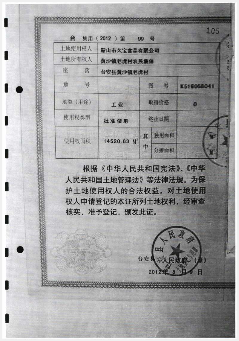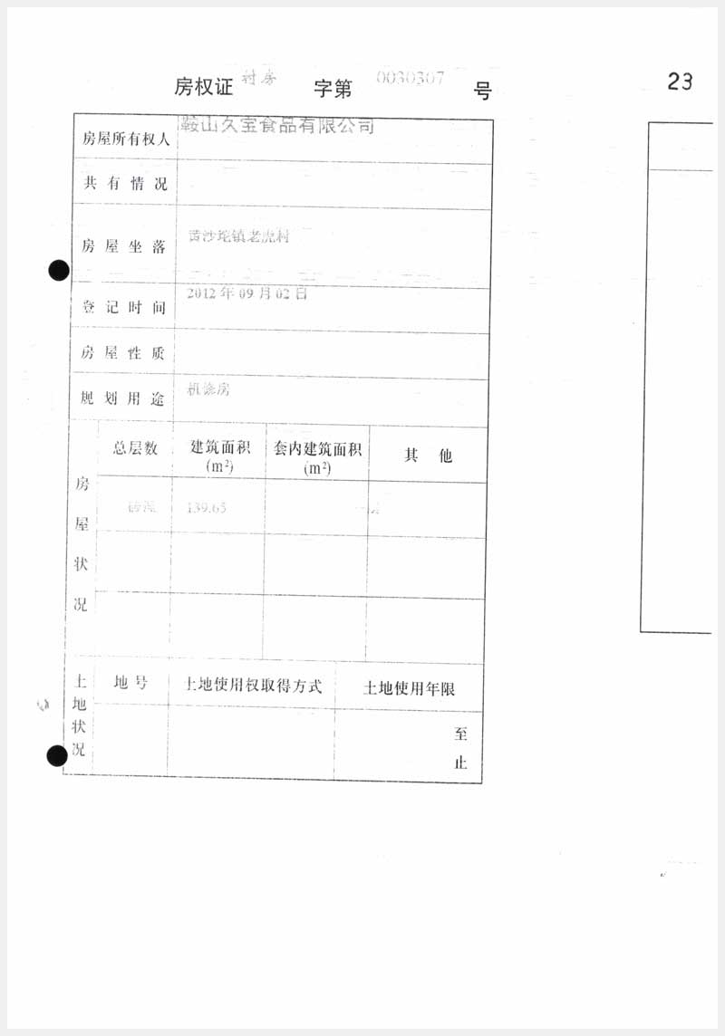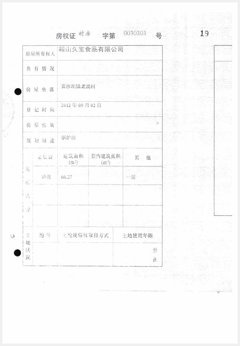 名稱:臺(tái)安縣黃沙坨鎮(zhèn)老虎村房產(chǎn)及土地使用權(quán) 面積:房產(chǎn):6178.13㎡;土地:14520.63㎡ 瀏覽次數(shù):1160