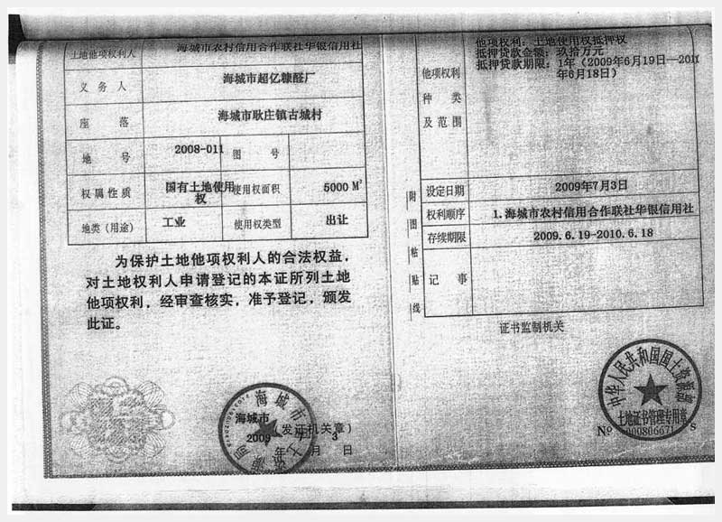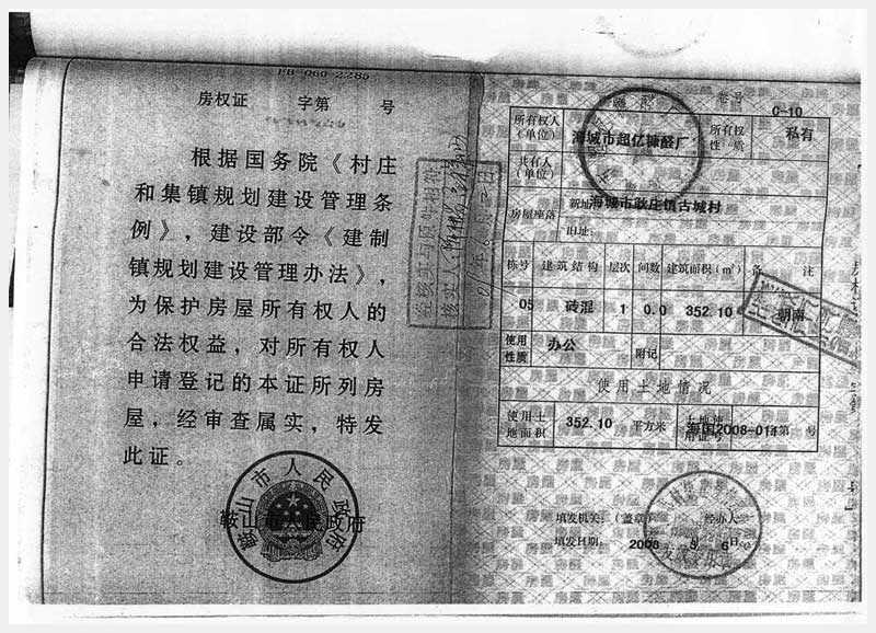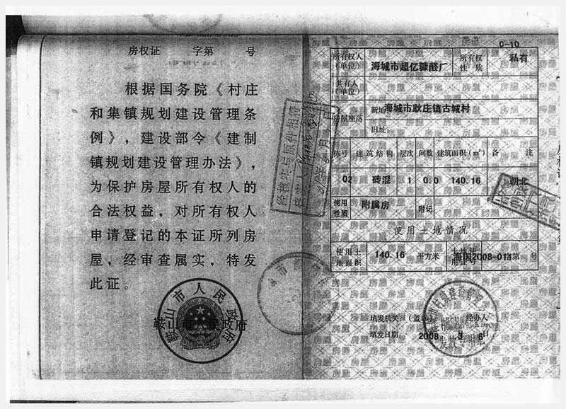 106號(hào) 海城市耿莊鎮(zhèn)古城村的國(guó)有土地使用權(quán)及廠房