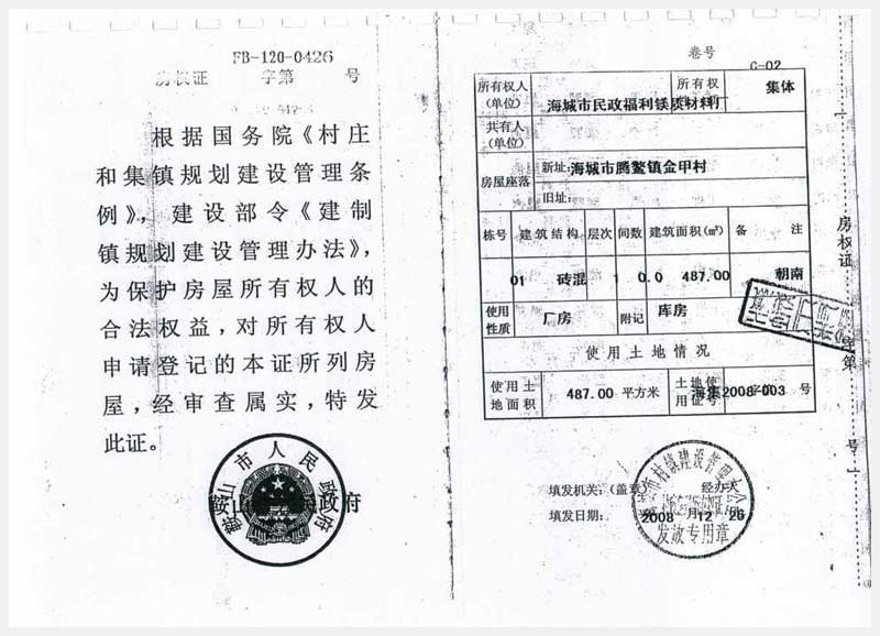 322號(hào) 位于海城市騰鰲鎮(zhèn)金甲村廠房、 集體土地使用權(quán)