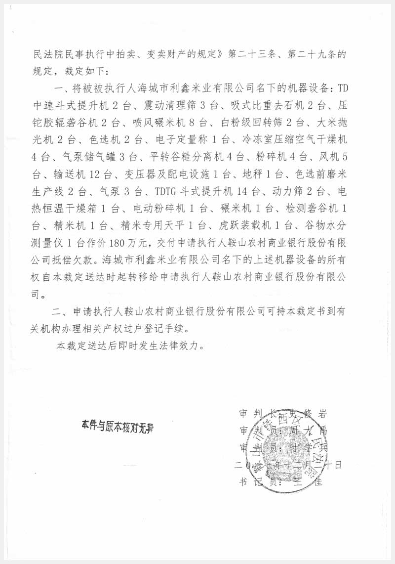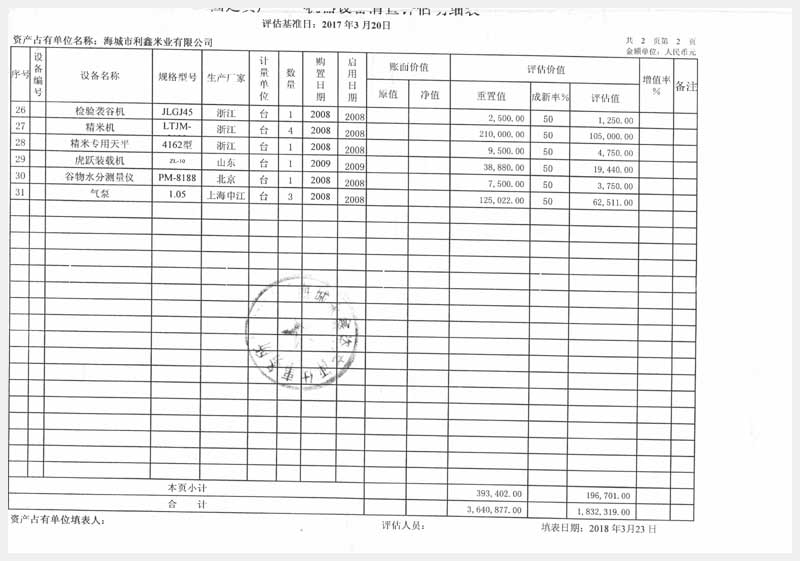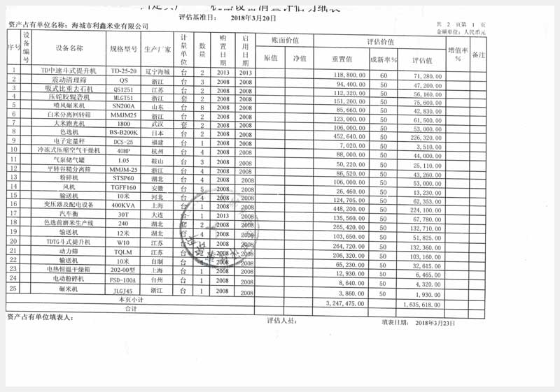 42號 海城市利鑫米業(yè)有限公司所有的機器設備