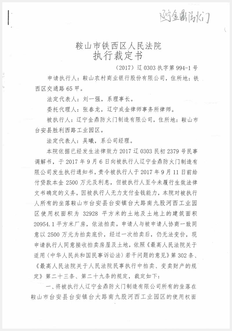 43號(hào) 鞍山市臺(tái)安縣臺(tái)安鎮(zhèn)臺(tái)大路南九股河西工業(yè)園區(qū)的工業(yè)用地及地上建筑物