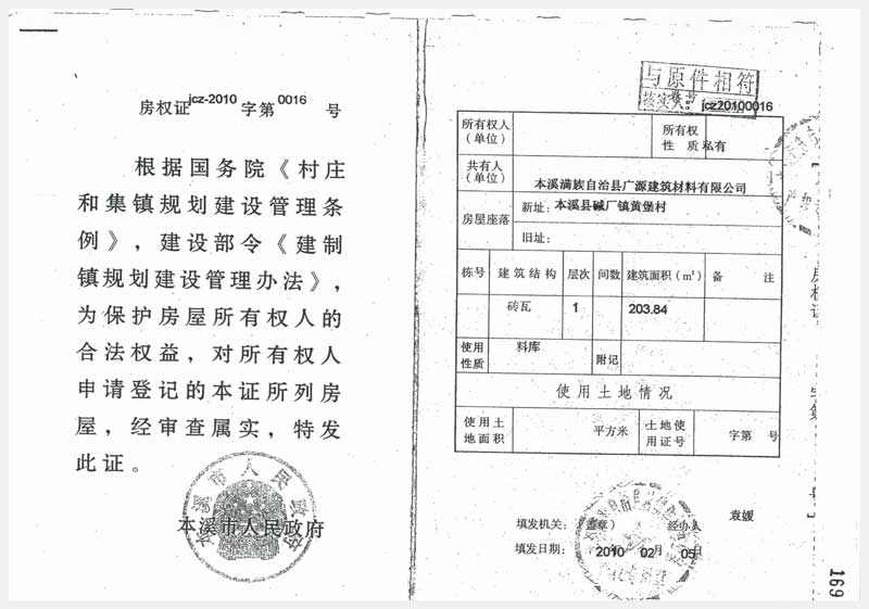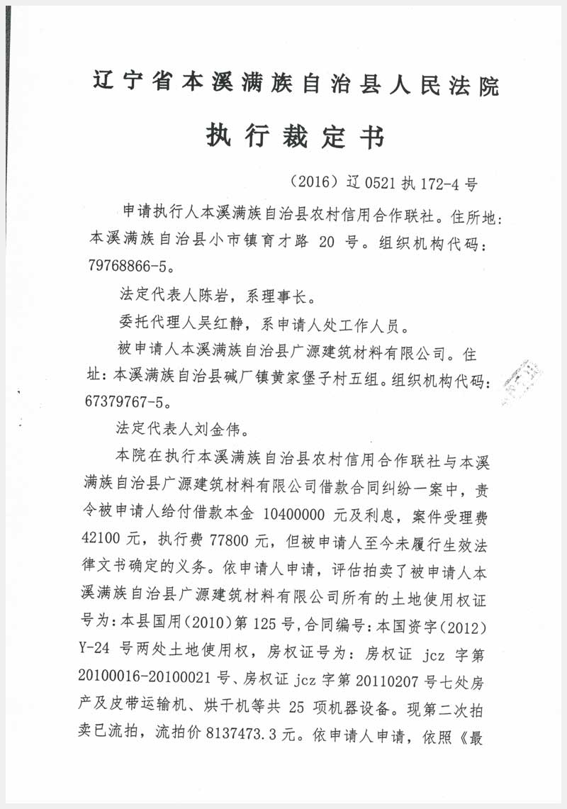 名稱:本溪縣堿廠鎮(zhèn)黃堡村房產(chǎn)7處、土地2處及設(shè)備25項(xiàng) 面積:房產(chǎn):3241.16㎡、土地:9290㎡ 瀏覽次數(shù):2017
