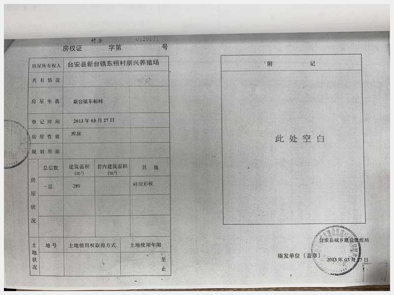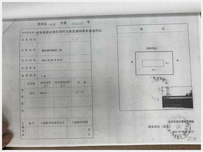 8號(hào) 新臺(tái)鎮(zhèn)東桓村朋興養(yǎng)殖場(chǎng)15處房產(chǎn)及土地