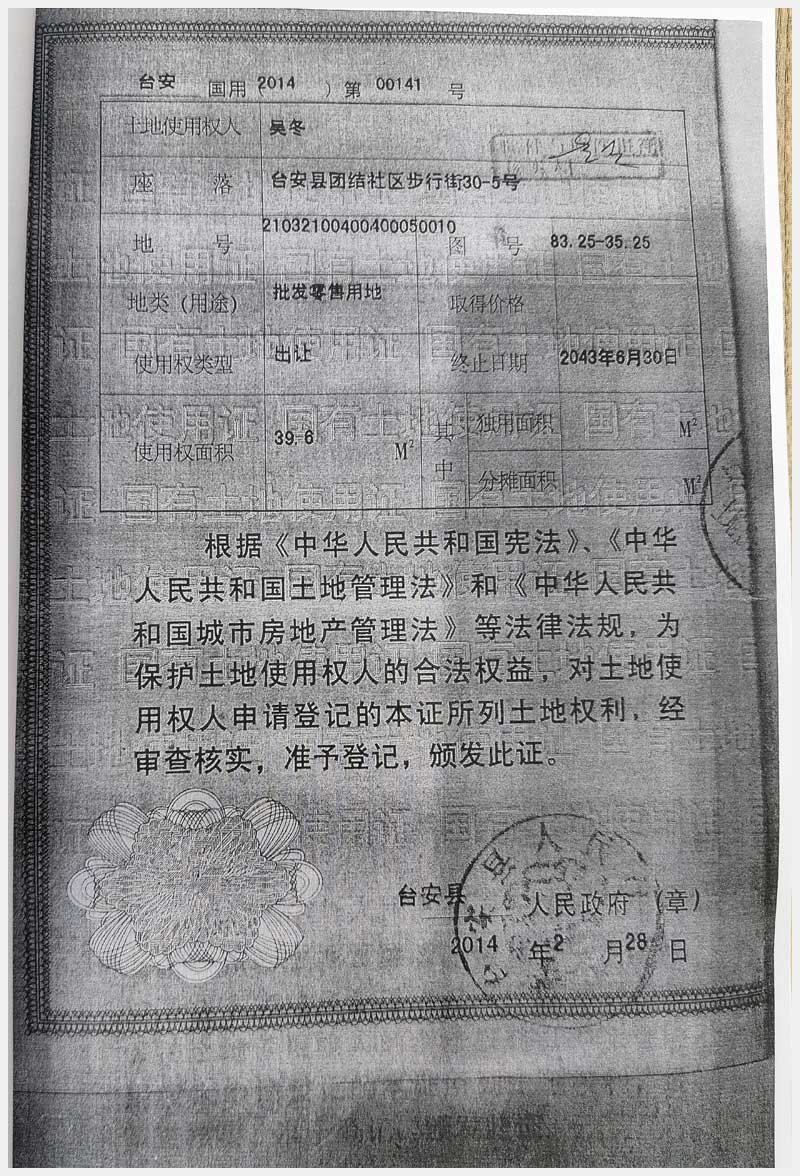 地址:臺安鎮(zhèn)文化路北工會南 標的號:69