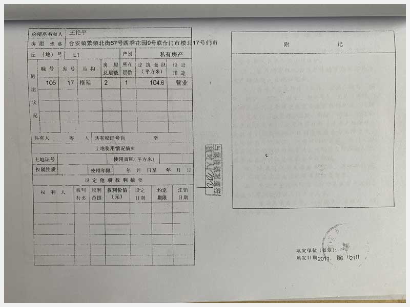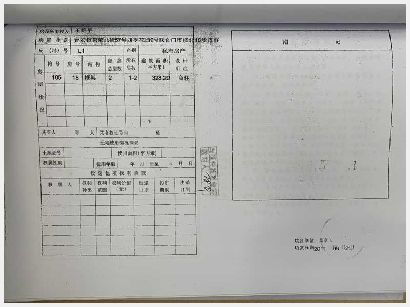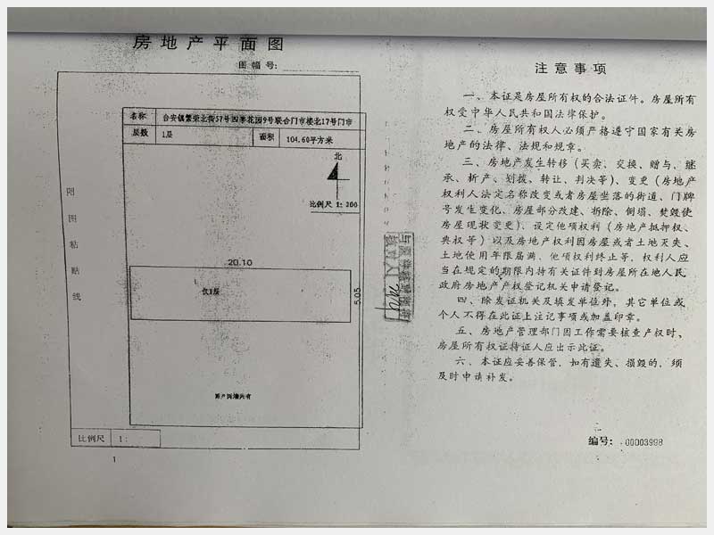 名稱:臺安縣臺安鎮(zhèn)繁榮北街57號四季花園門市樓13、14、15、16、17、18、19、20號 面積:13號:220.85㎡、14號:144.81㎡、15號:57.22㎡、16號:326.01㎡、17號:104.6㎡、18號:328.29㎡、19號:338.24㎡、20號:114.54㎡ 瀏覽次數(shù):1597