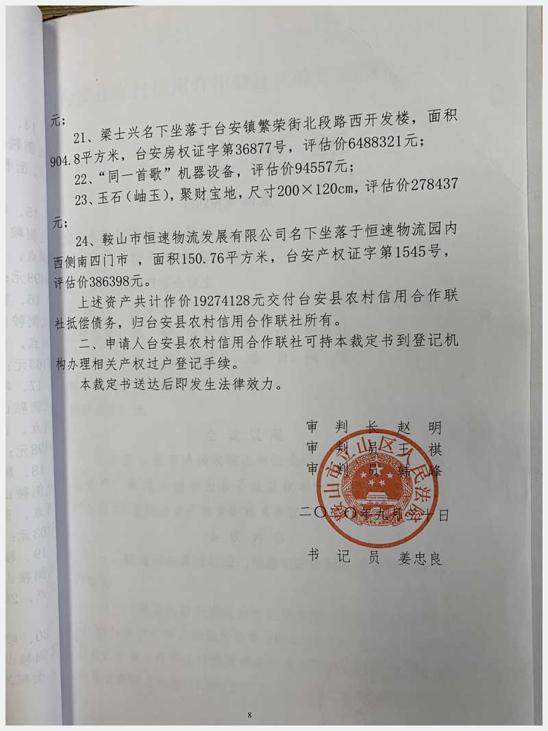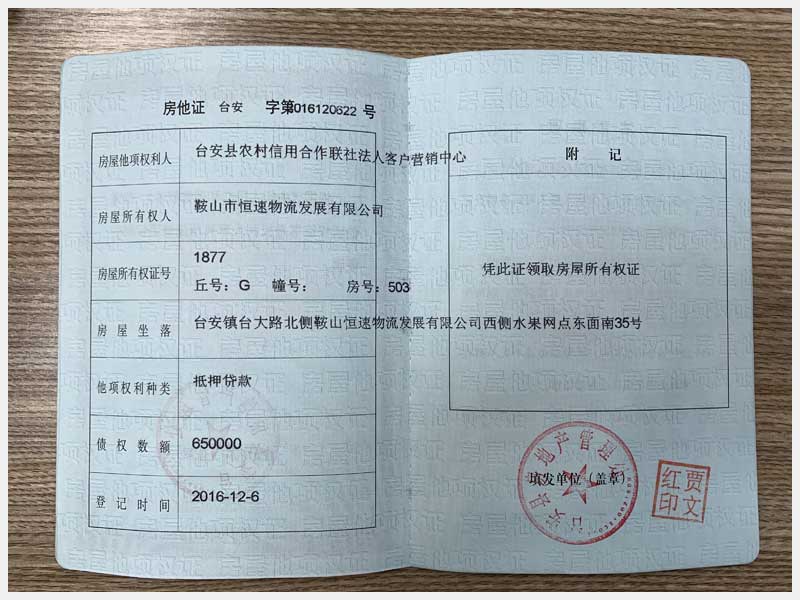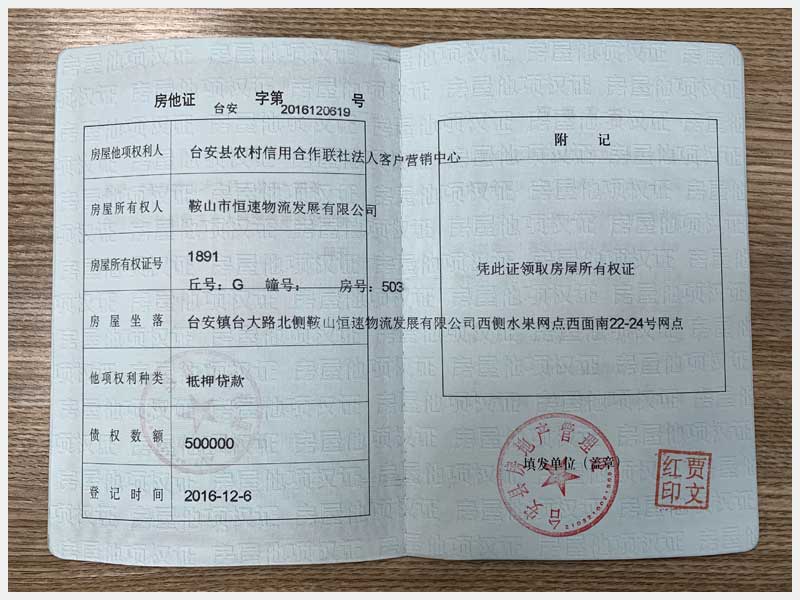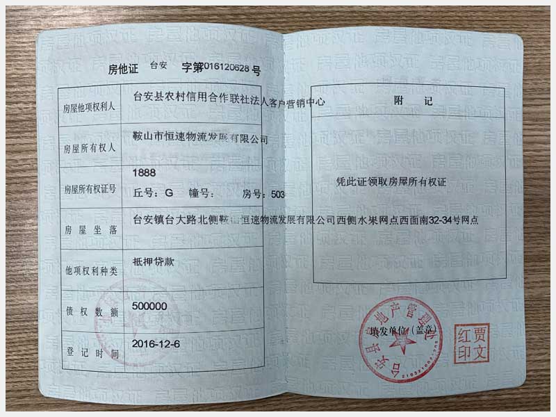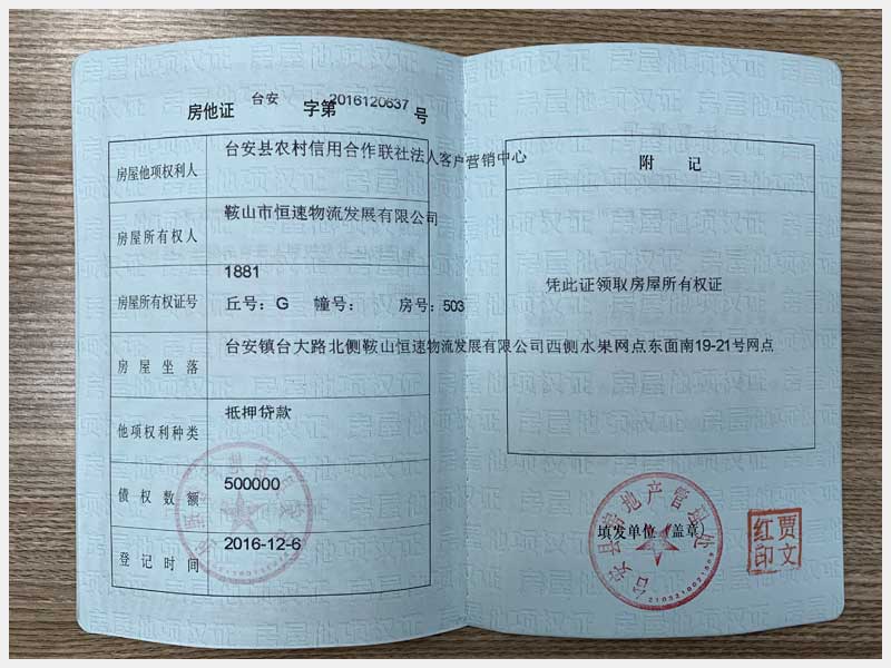 地址:臺(tái)安鎮(zhèn)臺(tái)大路北側(cè)鞍山恒速物流發(fā)展有限公司 標(biāo)的號(hào):71